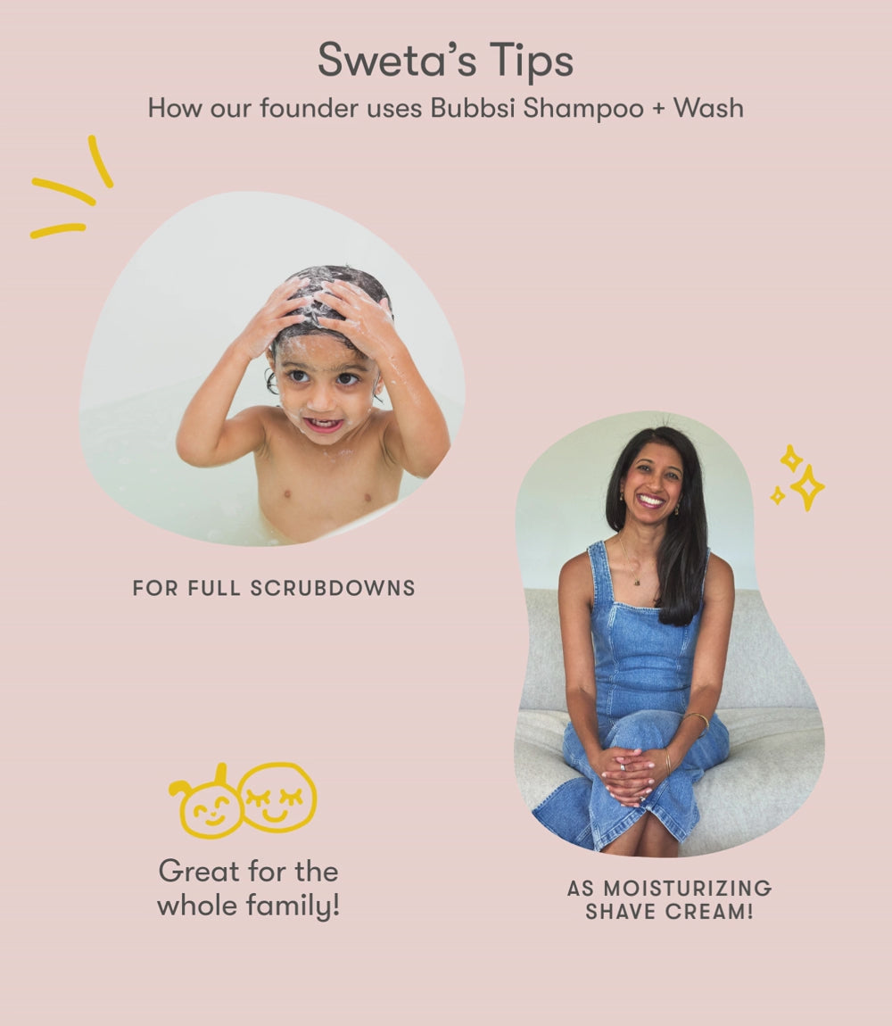 This whole gang will provide gentle & continuous natural hydration to your little one's skin and hair. We believe in moisturizing more and cleansing less. We recommend: 1) Daily moisture massages with our body cream 2) Spot treating extra dry skin with Oil Balm 3) A few scrubdowns a week with our shampoo + wash, followed by hair conditioner!